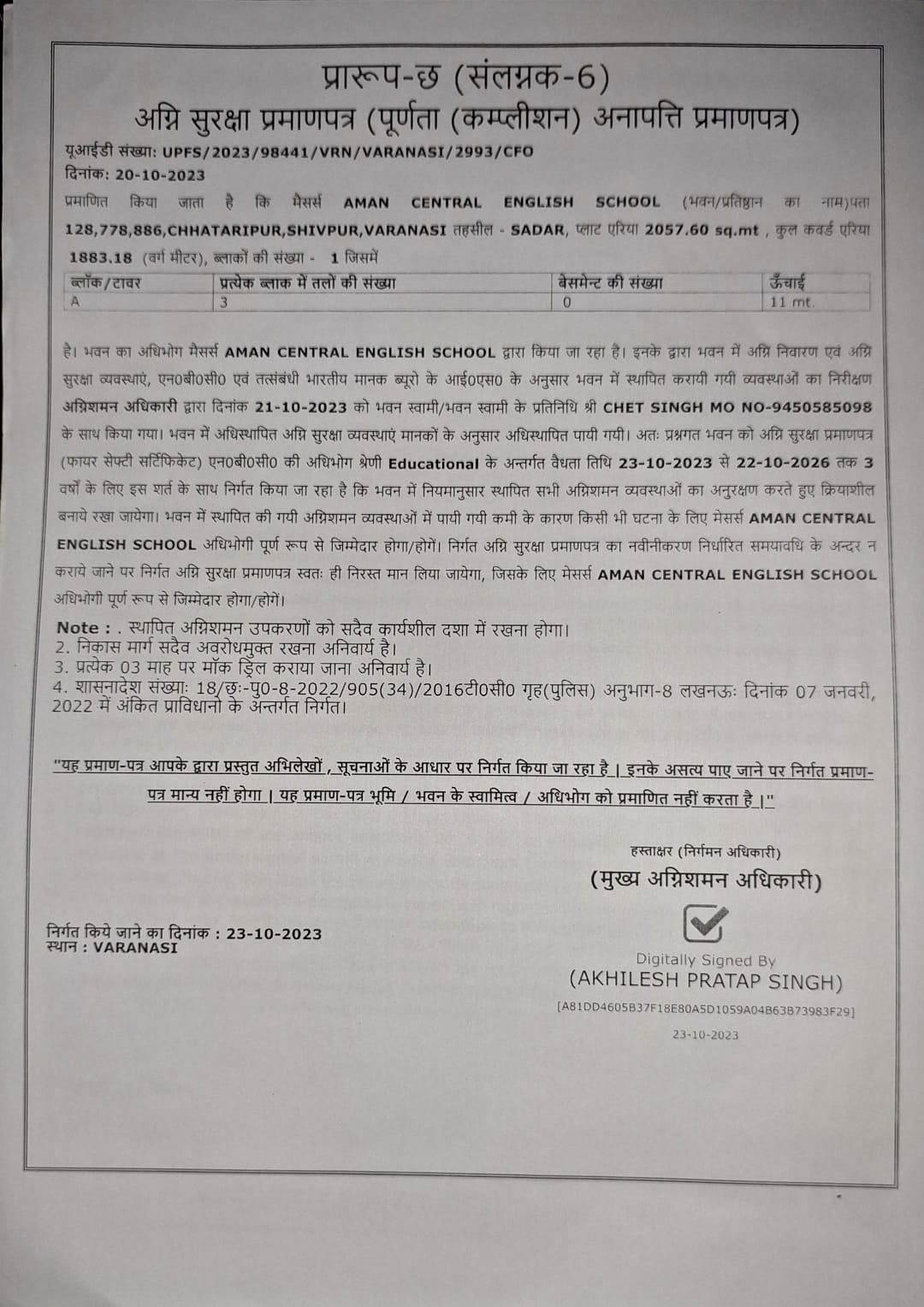 | 6 | FIRE SAFETY CERTIFICATE | View |